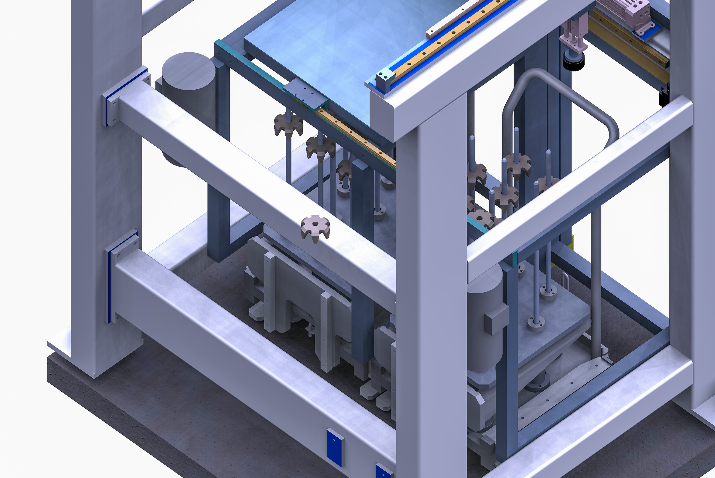 La ligne intègre plusieurs portiques 3 axes numériques permettant l'approvisionnement des composants à partir de bacs et plateaux thermoformés. Chaque station de chargement dispose d'une autonomie d'une heure et utilise des systèmes de reconnaissance (RFID / Balluff) pour identifier les références en entrée. Une attention particulière a été portée à la préhension des composants critiques, notamment via des systèmes de dévêtisseurs pour les arbres moletés et des manipulateurs magnétiques pour les roues polaires.